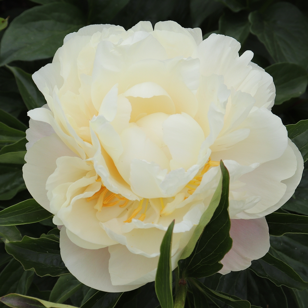 Edna’s Wish.  Stanek. 2020. Seedling #: CRM#2. Parentage: ‘Old Faithful’ x ‘Lemon Chiffon’. Mid/Late season bloom period. Double, size 7-8 inches, normally 3 blooms per stem, with fragrance. Sidebuds present as semi-doubles. Creamy light yellow, flushed pale pink most heavily on the outer rows of petals. Carpels are variable, may number up to 4, or may be completely absent. When carpels are present, they are white and moderately hairy. Light pink stigmas may be feathered, but have produced seeds. Some pollen-bearing stamens can be found amongst the petals. Staminodal disc obscure. Upright spreading bush 38-40 inches tall (96-102 cm). Strong stems support the flowers without added mechanical support. Foliage can provide color in the fall (amber, purple, red). Has demonstrated good potential for cold storage and vase use. Awarded Certificate of Merit and advanced to the Court of Honor at the 2014 APS Annual Exhibition, Mansfield, Ohio. Named for the registrant’s mother-in-law.  Premium divisions ship late September to mid-October.