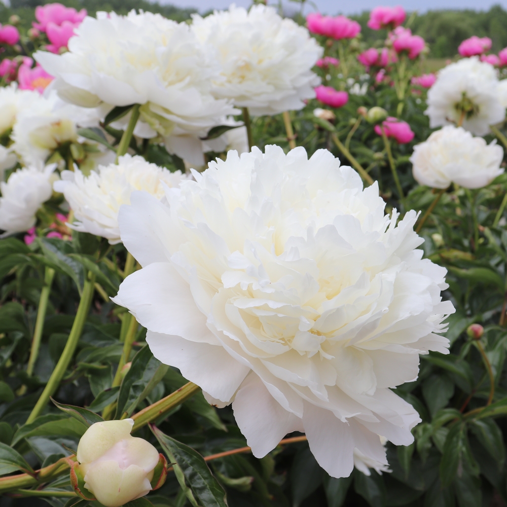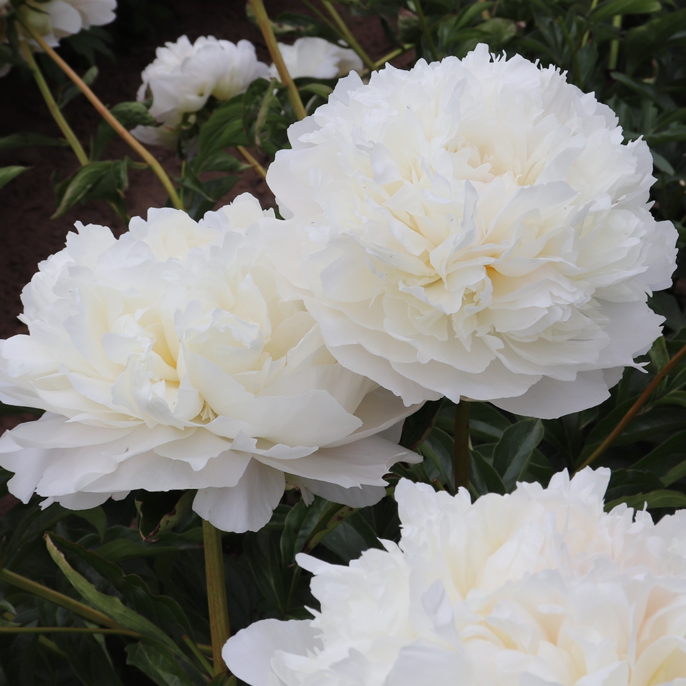 Henry Sass.  Sass.  1949.  Lactiflora cultivar.  Fragrant.  Pure white, highly built, large double flowers.  Strong 34″ stems, but should be supported as flowers are very heavy and may lie on the ground if wet.  Excellent cut flower, show flower and good opener in warm weather.  2-3 side buds. Good, healthy growing plant.  No fertility to date.    Premium divisions ship late September to mid-October.
