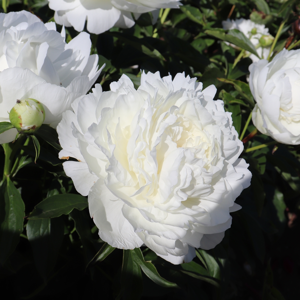 Joseph Christie. Rosenfield. 1939. Lactiflora Group. APS: White with faint yellow glow upon first opening. Perfect full double of unusual refinement and great charm. Received Honorable Mention under the number 2-30 at the National Peony Society show, Des Moines, Iowa. Medium height with strong stems and clean, healthy foliage well distributed on stems. Seedling #: 2-30. Excellent and a very good cut flower. Superior. Premium divisions ship late September to mid-October.