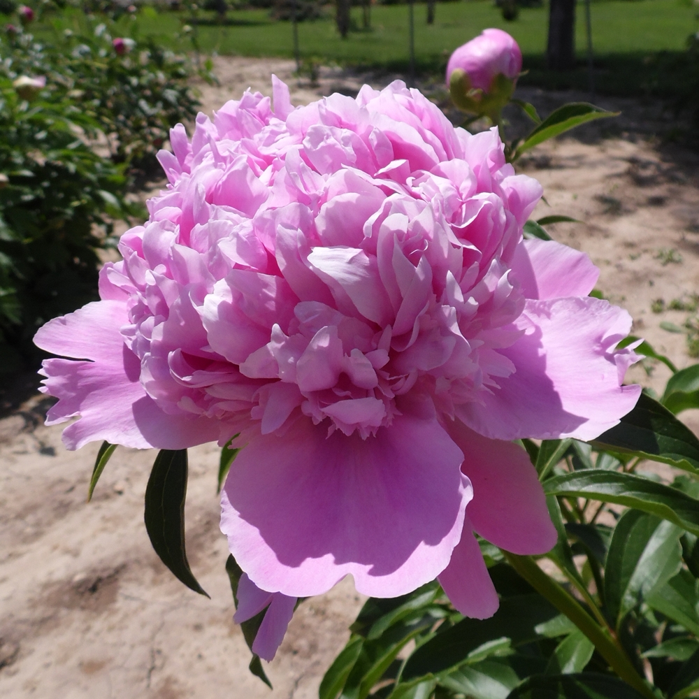 Monsieur Jules Élie. Crousse. 1888. Lactiflora cultivar. The rose pink double flowers are very large and produce a cone-like shape at maturity. Guard petals are large, and the bomb-like petals at the center are like layered and curled feathers. Plants are relatively tall and very free-flowering. Stems benefit from mechanical support due to heavy blooms. Foliage is medium green and healthy. One of the most popular of all peonies and heavily used in Klehm hybridizing lines. An outstanding cut flower and fragrant. Premium divisions ship late September to mid-October.