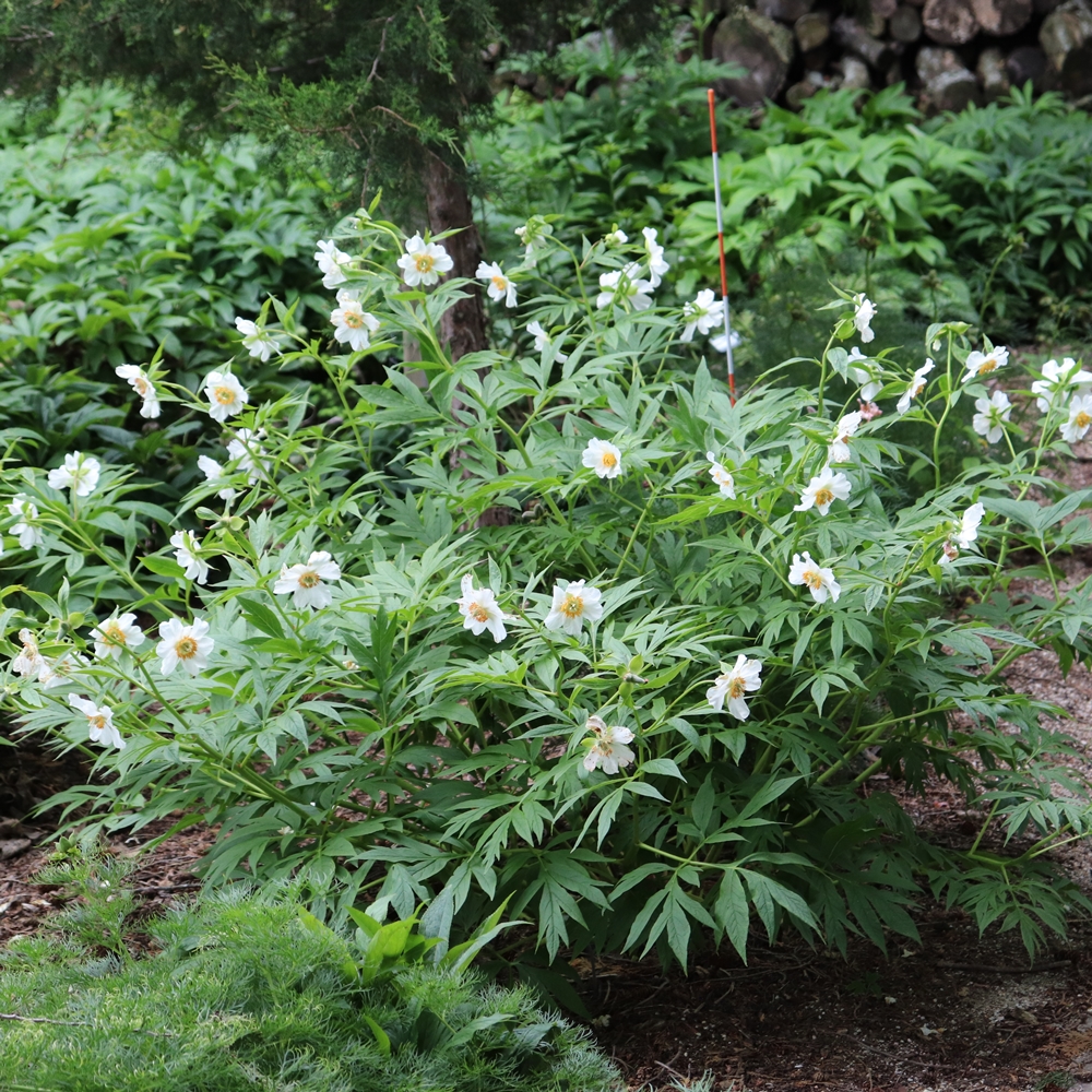 Windflower Strains.  Herbaceous Hybrid.  These arise from Paeonia emodi crossed with Paeonia anomala sbsps. vietchii plants or selfings of ‘Early Windflower’.  This is a herbaceous hybrid of species characteristics with dainty white flowers.  These are very attractive plants closely resembling ‘Early Windflower’.   Much like Early Windflower, but plants are more diminutive. Easily grown plants are attractive for collectors and general gardeners alike. Premium divisions ship from late September to mid-October.
