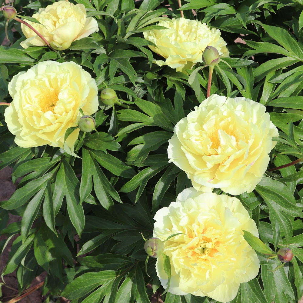 Lemon Dream. Anderson. 1999. Flowers are lemon sometimes with purple petals mixed with yellow or yellow with purple splashes, but are most often completely yellow. A great intersectional, very much like Bartzella in flower and plant habit. A healthy, easy growing plant. No fertility noted. Parentage: (Martha W x Golden Era). Premium divisions ship late September to mid-October.