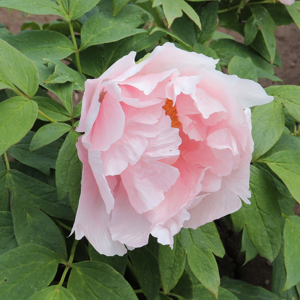 Cherry Blossoms. Domoto/Klehm. 1995. Softest, delicate pink, semi-double flowers. Slightly ruffled and crinkled, flower petals. Parentage: Moutan seedling raised by Toichi Domoto. Flowers produce pollen and seeds. Good stem strength, 3 feet plus or minus. Foliage is a mid-green. One bud per stem. Requires a well-drained and airy location to grow well. Seedling # K87-04.