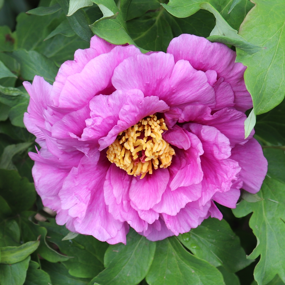 Purple Prince.  Irvine/Sutherland.  2001.  Advanced Generation Lutea Hybrid. Seedling # 467/13.  Parentage: SH58 x ‘Rosalind Elsie Franklin’, (SH58 is SH11 x Zephyrus, SH11 is D223 x Chinese Dragon).  Grown from seed produced from Bill Seid’s Lutea hybridizing program and selected in New Zealand. Semi-double flowers are a deep, clear lavender, and petals are layered to create a beautiful presentation.  Flower carriage is upward and outward.  Excellent plant habit and clean, healthy Lutea Hybrid foliage.  An excellent cultivar that has not seen wide distribution to date.   Seed fertility noted.  Ships in late September to mid-October.  AGE: Field-grown, 3+ year old graft or division from larger plants – our choice of available plant material upon harvest.