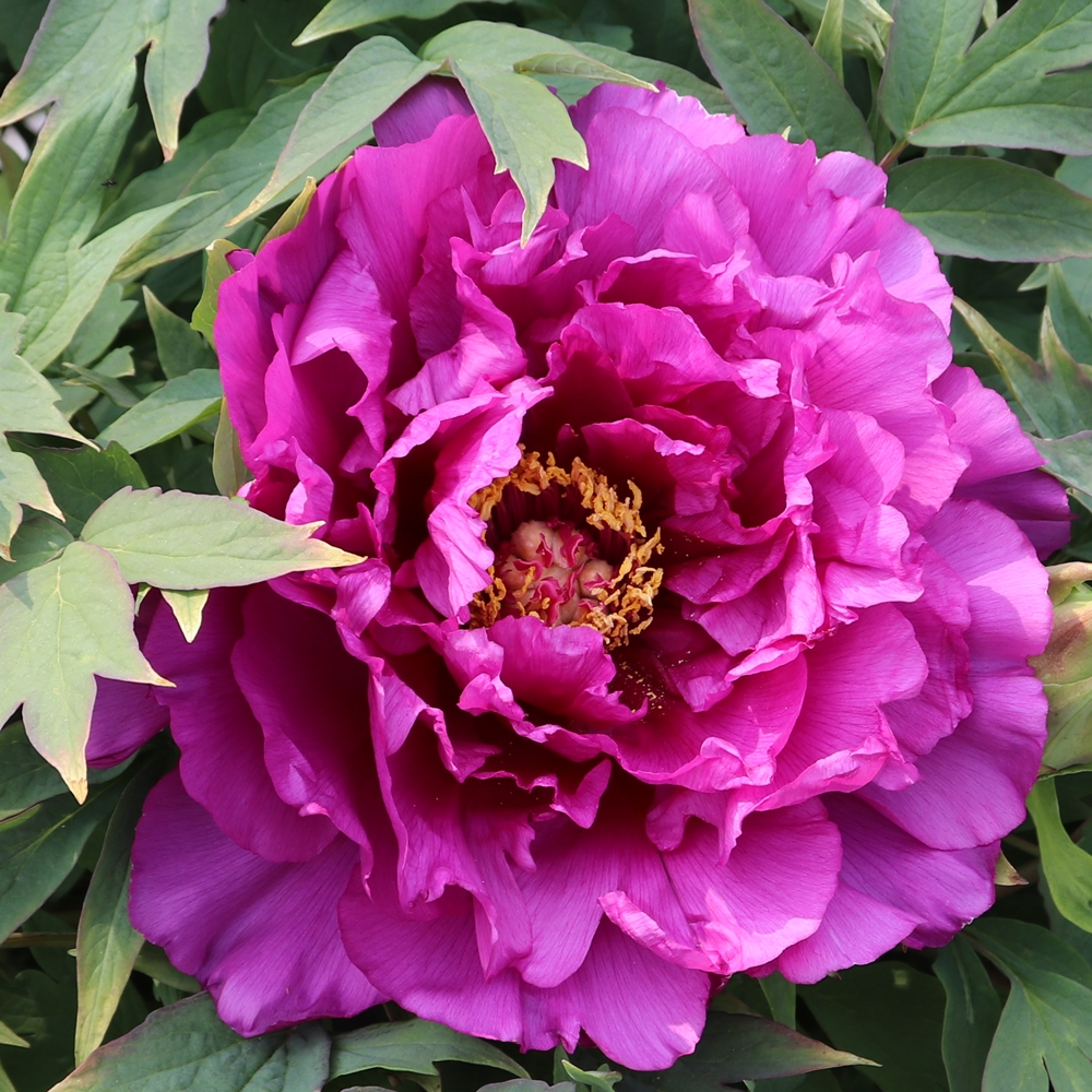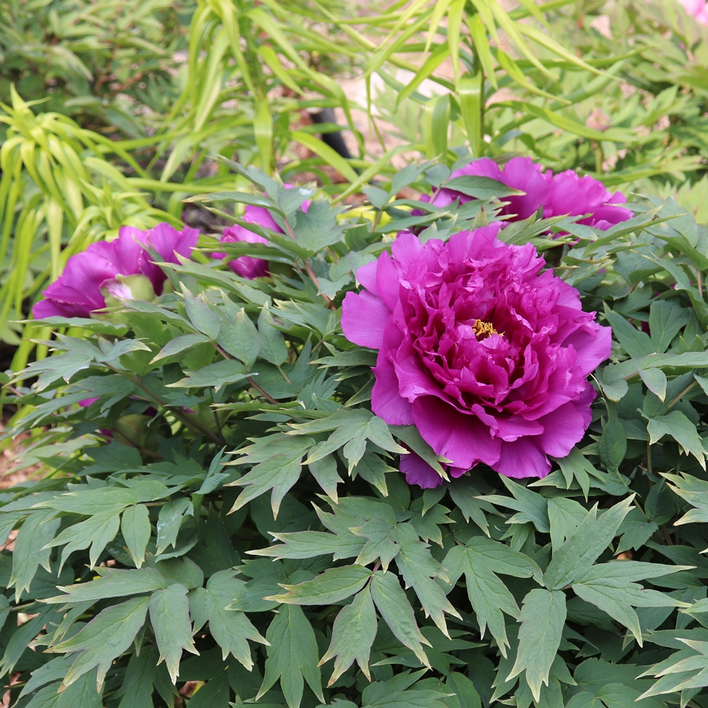 Royal Robe. Klehm. 1995. American suffruticosa. Royal purple, semi-double Suffruticosa. A seedling raised by Toichi Domoto. Flowers have good substance and are fragrant. Large blooms have internal petal ruffling. Excellent stem strength, 3 ft. plus or minus in Wisconsin. One bud per stem. Fertile seed and pollen. An excellent purple-violet selection. The large, deep blue-green foliage is clean and carried on thick stems. This cultivar is very similar (if not the same) as Imperial Crown-if you purchase either, avoid the other. Ships in late September to mid-October. AGE: Field-grown, 3+ year old graft or division from larger plants – our choice of available plant material upon harvest.
